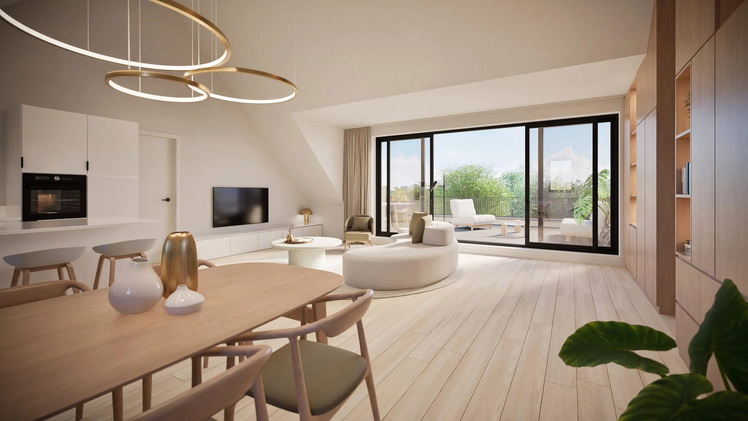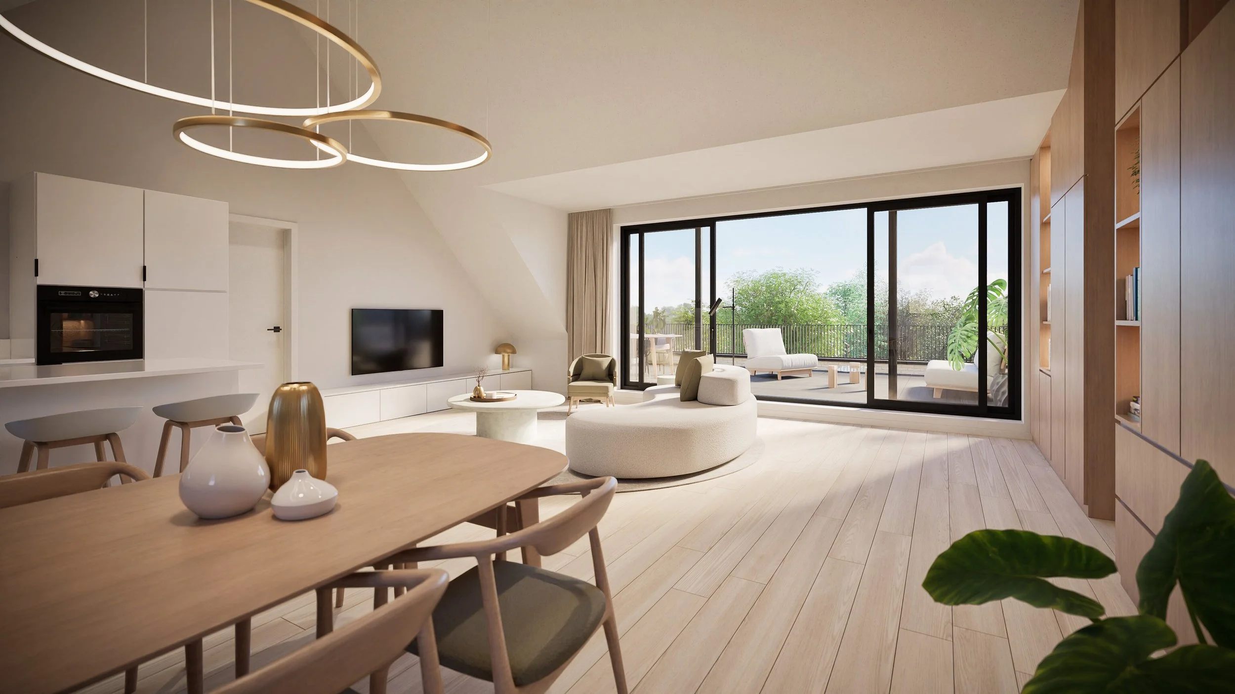 Dankzij de zuid-westelijke oriëntatie geniet je de hele dag van natuurlijke lichtinval en een warm, open gevoel in elke woning.
