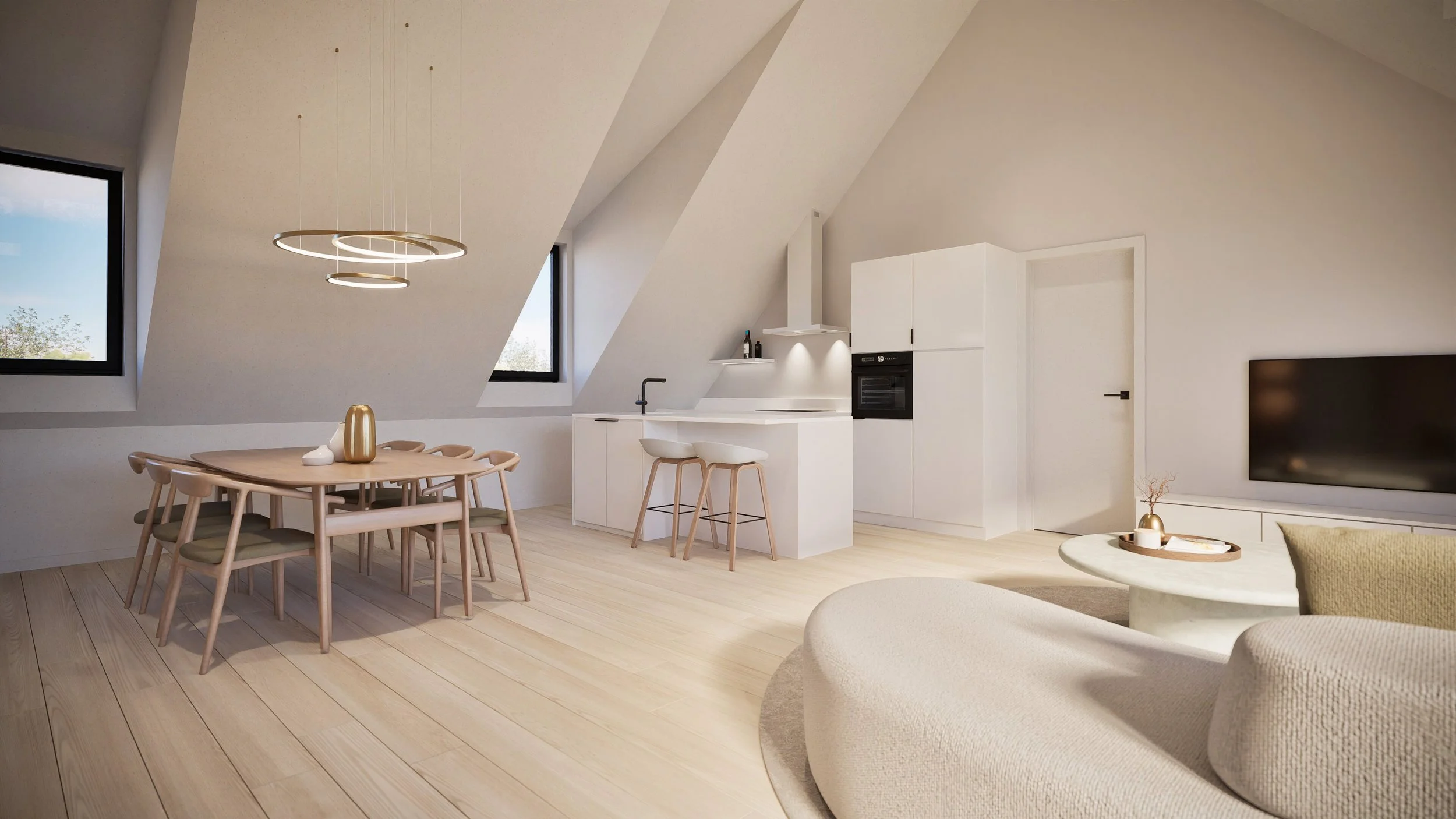 Comfortabel wonen: De standaardafwerking omvat onder meer parketvloeren in de leefruimtes en slaapkamers gecombineerd met vloerverwarming voor een maximaal comfort. De standaard keuken en badkamer zijn voorzien met hedendaagse zorgvuldig uitgekozen materialen.